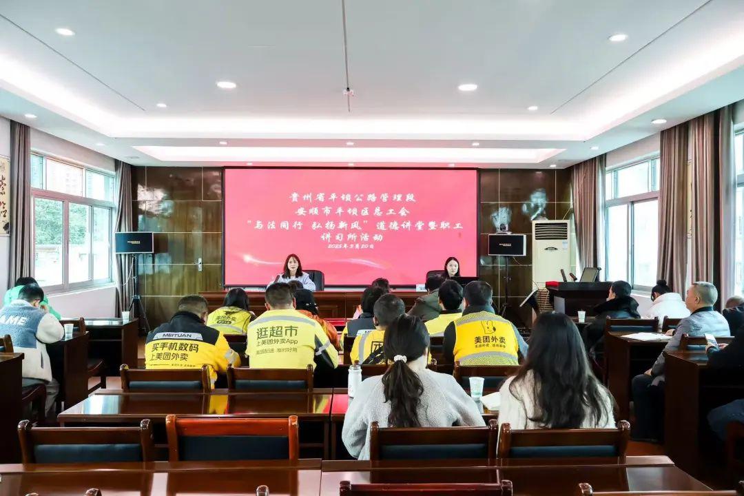 近日,貴州省安順市平壩區(qū)總工會(huì)與貴州省平壩公路管理段聯(lián)合舉辦了“與法同行 弘揚(yáng)新風(fēng)”職工講習(xí)所宣講宣傳活動(dòng),旨在加強(qiáng)法治宣傳,提升干部職工法律意識(shí),助力精神文明與廉潔文化建設(shè)。活動(dòng)吸引了平壩區(qū)總工會(huì)代表、京平環(huán)衛(wèi)工人、美團(tuán)騎手及平壩公路管理段職工等 50余名新就業(yè)形態(tài)勞動(dòng)者參與。