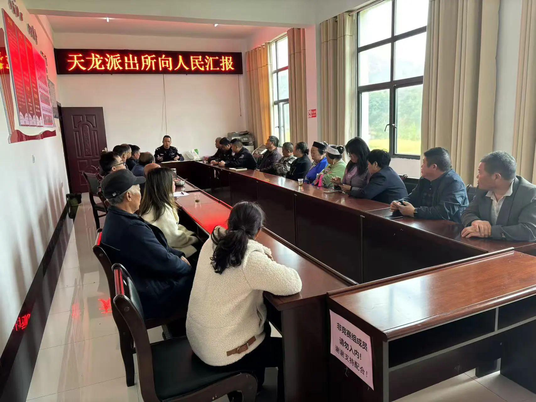 為深化警民聯(lián)動(dòng)機(jī)制,推進(jìn)平安建設(shè)提質(zhì)增效,近日,貴州省安順市平壩區(qū)公安局天龍派出所在天龍鎮(zhèn)天龍村開展“向人民匯報(bào)”警民懇談活動(dòng)。政府相關(guān)部門代表、村委干部、個(gè)體工商戶及群眾代表等30余人齊聚一堂,共話轄區(qū)治安治理新成效,共謀平安建設(shè)新路徑。