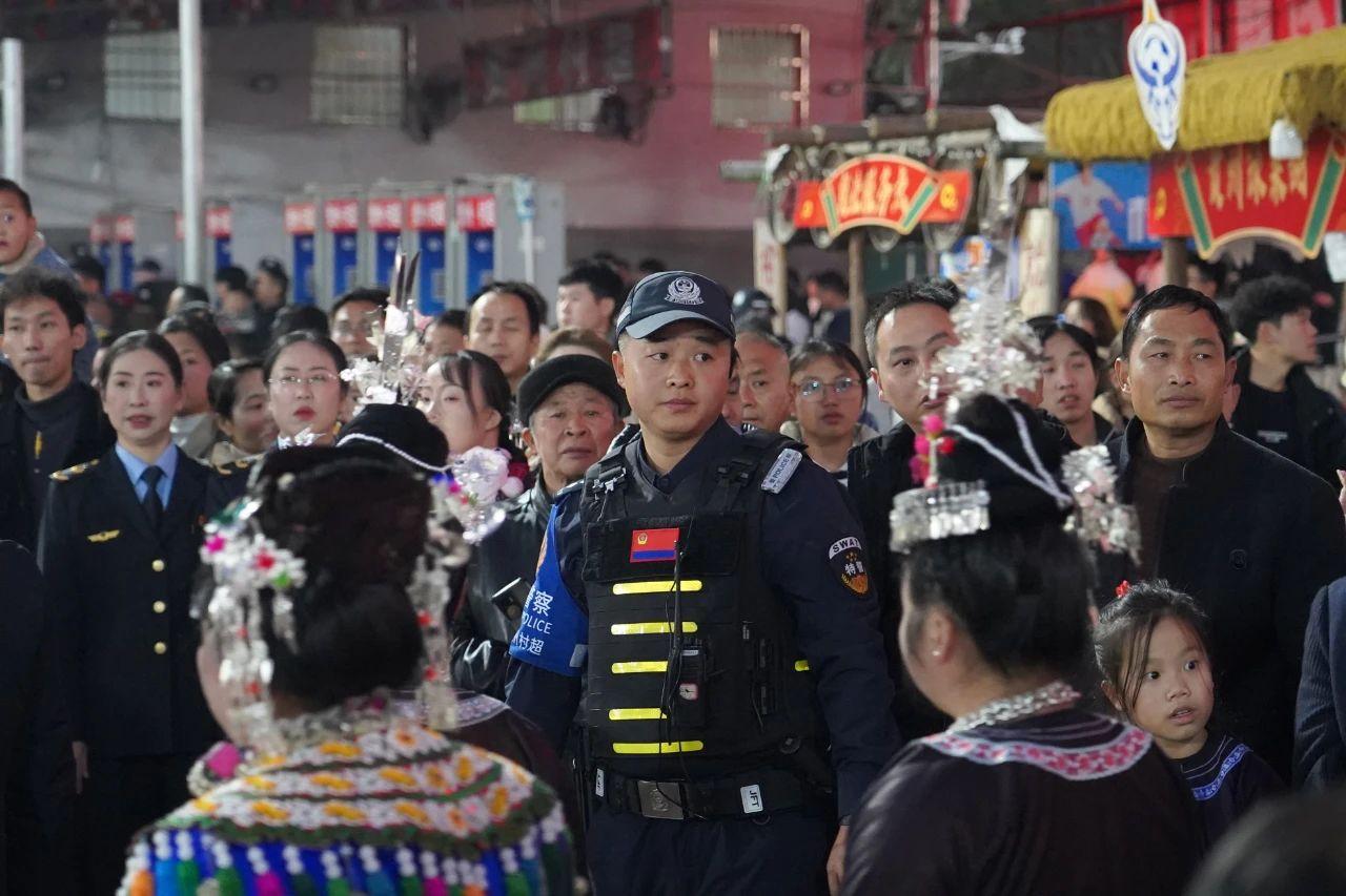 圖為榕江縣公安局民警維護(hù)活動現(xiàn)場秩序。