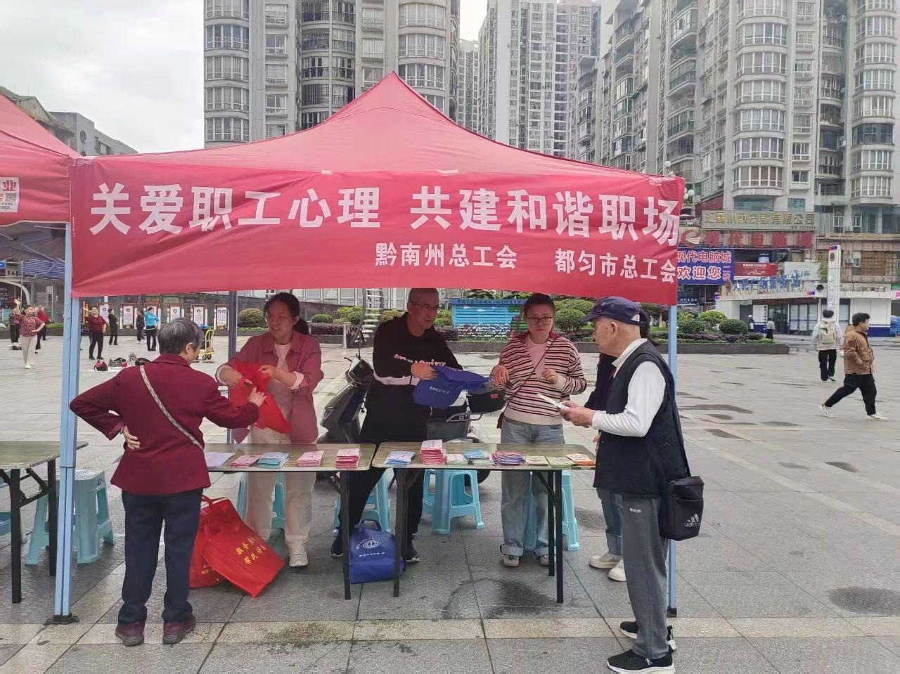 近日,貴州省黔南州都勻市總工會在都勻市人民廣場開展主題為“關(guān)愛勞動者心理健康”2025年《中華人民共和國職業(yè)病防治法》宣傳周活動。活動現(xiàn)場,市總工會工作人員向現(xiàn)場新就業(yè)形態(tài)勞動者及過往職工群眾發(fā)放《中華人民共和國職業(yè)病防治法》《中華人民共和國婦女權(quán)益保障法》《中華人民共和國反家庭暴力法》等宣傳資料500余份,針對職工群眾關(guān)心的粉塵危害預(yù)防、工傷保險等問題,通過現(xiàn)場講解、咨詢等方式進(jìn)行解答,進(jìn)一步普及職業(yè)病防治知識,強(qiáng)化勞動者自身健康第一責(zé)任人意識。