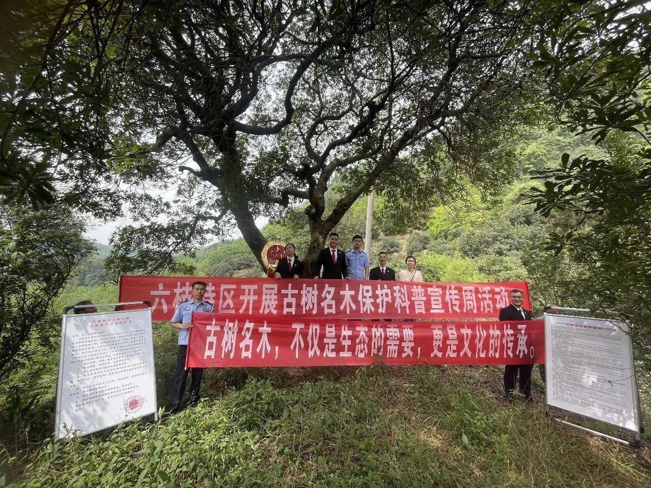 六枝法院發(fā)布《古樹名木司法保護令》,并聯(lián)合檢察院、公安局、自然資源局到全國生態(tài)文化村岱甕村開展聯(lián)合科普宣傳,結合當?shù)亍肮艞蠲妨帧钡纳L態(tài)勢、保護現(xiàn)狀、經(jīng)濟價值等入戶進行法治宣傳,引導群眾樹立“保護古樹名木人人有責”的法治觀念,通過“司法+行政+宣傳”的方式,共筑古樹名木保護“墻”。