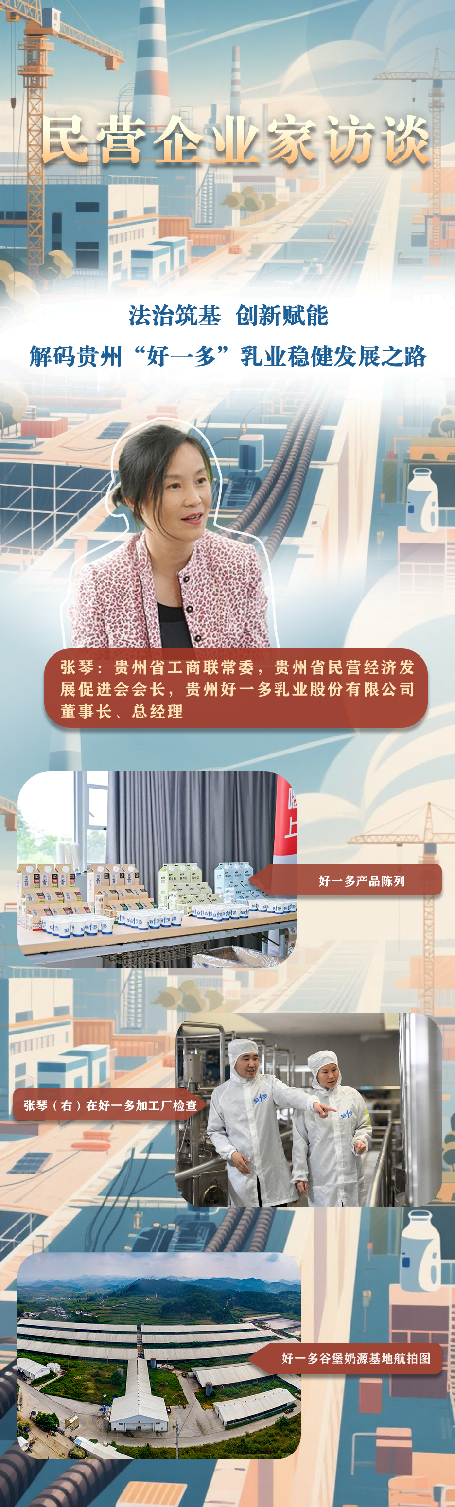 張琴:貴州好一多乳業(yè)股份有限公司創(chuàng)建于2001年,是國家級農(nóng)業(yè)產(chǎn)業(yè)化重點(diǎn)龍頭企業(yè)。2024年產(chǎn)值達(dá)3.5億元,帶動就業(yè)超5000人。作為貴州省首家且唯一通過國家優(yōu)質(zhì)乳工程驗(yàn)收的乳企,研發(fā)了系列中高端鮮奶、酸奶和冰淇淋等30多種優(yōu)質(zhì)產(chǎn)品投放市場,深受消費(fèi)者的喜愛。