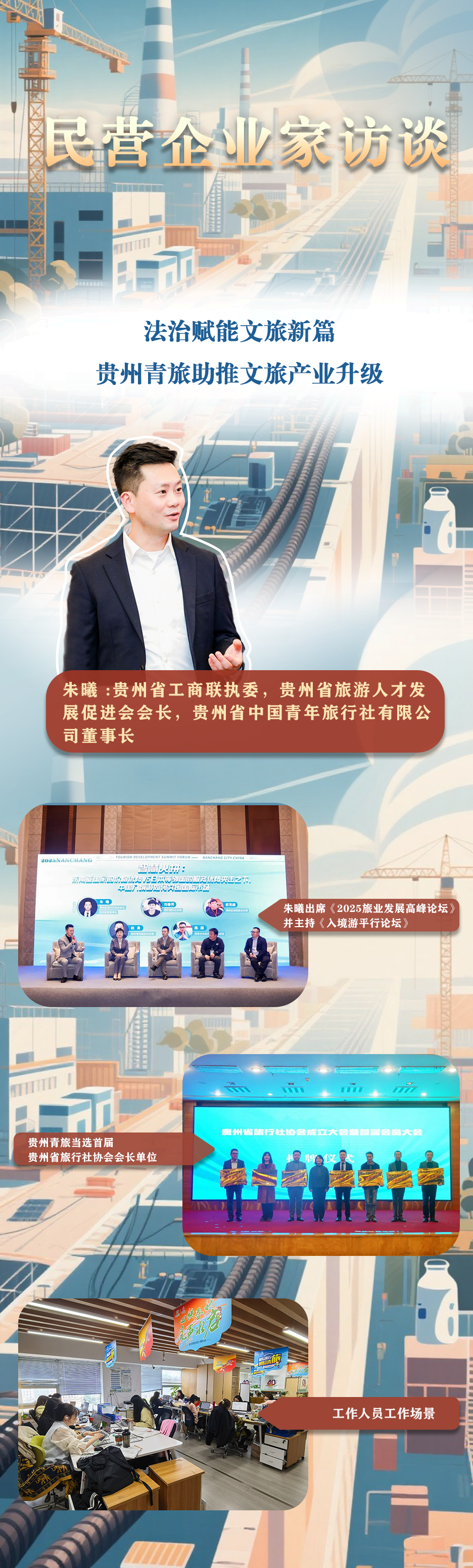多次榮膺全國旅游行業(yè)“青年文明號(hào)”、貴州省“優(yōu)秀旅游企業(yè)”等稱號(hào),著力打造貴州旅游行業(yè)品牌,如今的貴州省中國青年旅行社有限公司(簡稱“貴州青旅”)已成為貴州省旅行社行業(yè)領(lǐng)軍企業(yè)。本期民營企業(yè)家訪談,法治網(wǎng)·法治黔行記者對(duì)話貴州省工商聯(lián)執(zhí)委,貴州省旅游人才發(fā)展促進(jìn)會(huì)會(huì)長,貴州省中國青年旅行社有限公司董事長朱曦,為我們分享貴州青旅對(duì)文旅行業(yè)發(fā)展的真知灼見。
