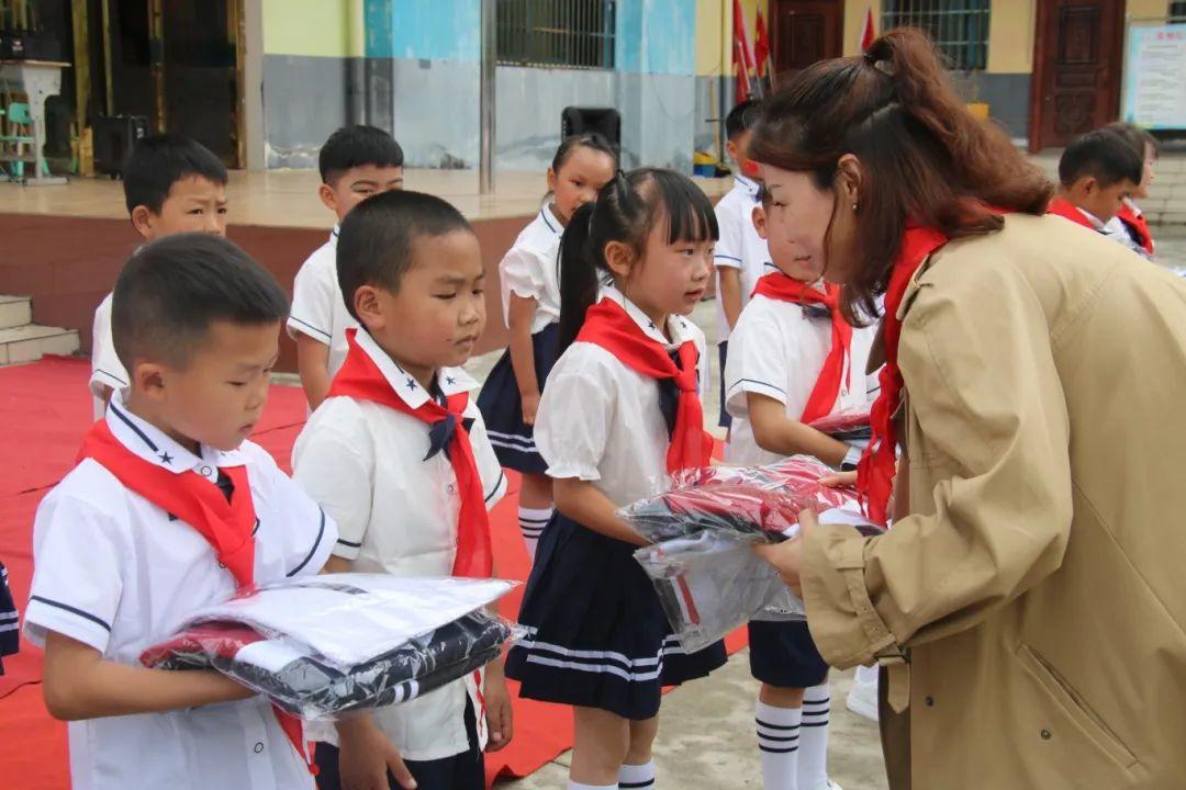 換上新校服的學生代表說:“感謝叔叔阿姨們送來的新校服,我們一定會好好學習,長大后也要像你們一樣,幫助更多的人。”