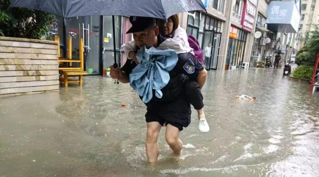 終于,在一居民區(qū)樓下發(fā)現了被困店內的六人。此時,店外的積水已深達30-40厘米,沒過了膝蓋!眼看被困群眾多為行動不便的老人,民警何光偉毫不猶豫地喊道:“脫鞋!挽褲腳!跟我上!”他帶頭與隊員蹚入渾濁的積水中,將被困群眾一個一個背到安全地帶,同時緊急聯(lián)系消防隊增援。