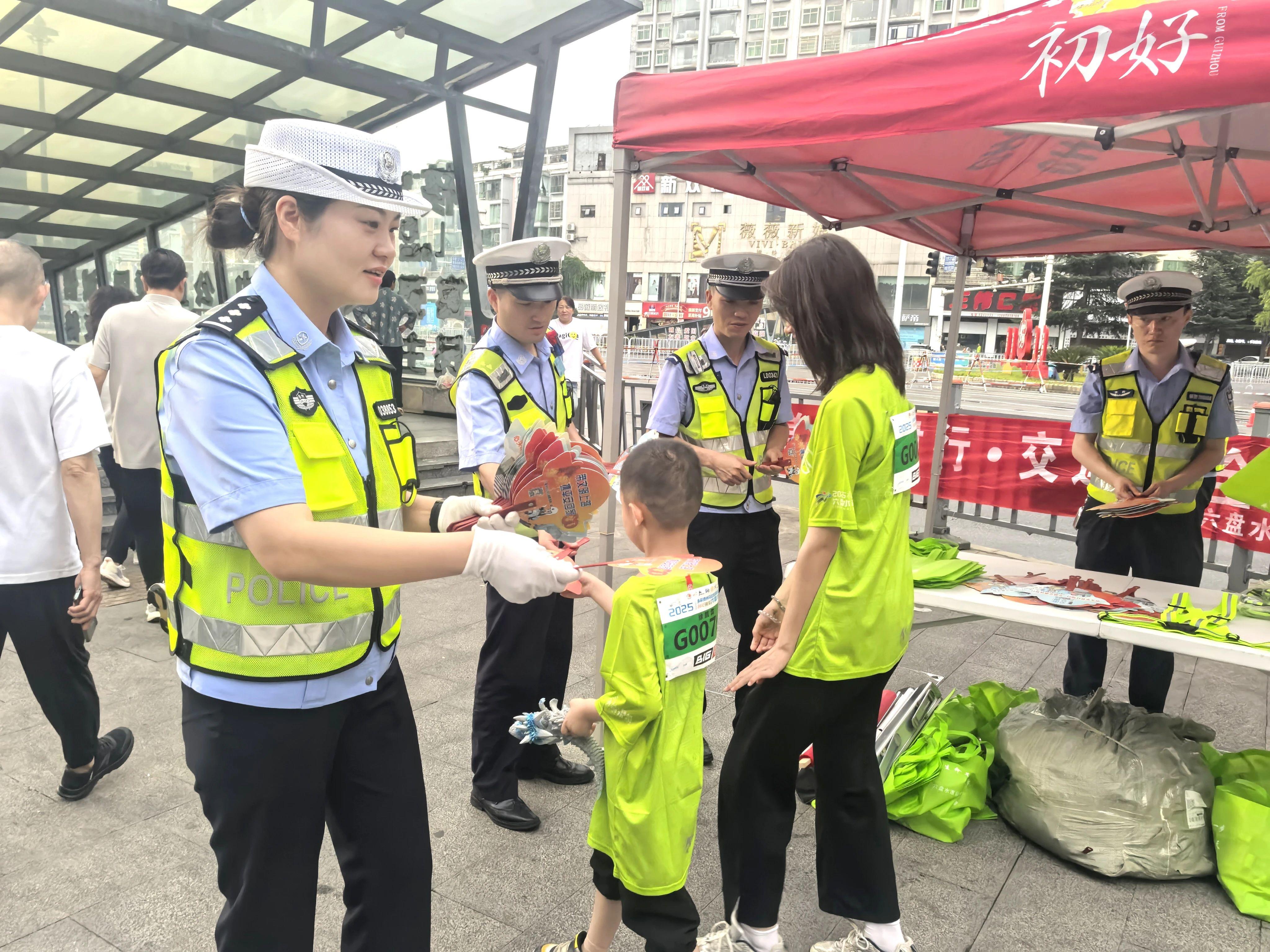 “被看見才安全”——暖心發(fā)放反光安全帶針對參賽者的特點(diǎn),六盤水交警創(chuàng)新服務(wù)舉措,在活動現(xiàn)場設(shè)置宣傳服務(wù)臺向游客、群眾免費(fèi)發(fā)放反光安全帶、小扇子,并現(xiàn)場講解夜間出行安全知識,提醒大家“被看見才安全”,有效提升夜間出行安全系數(shù)。