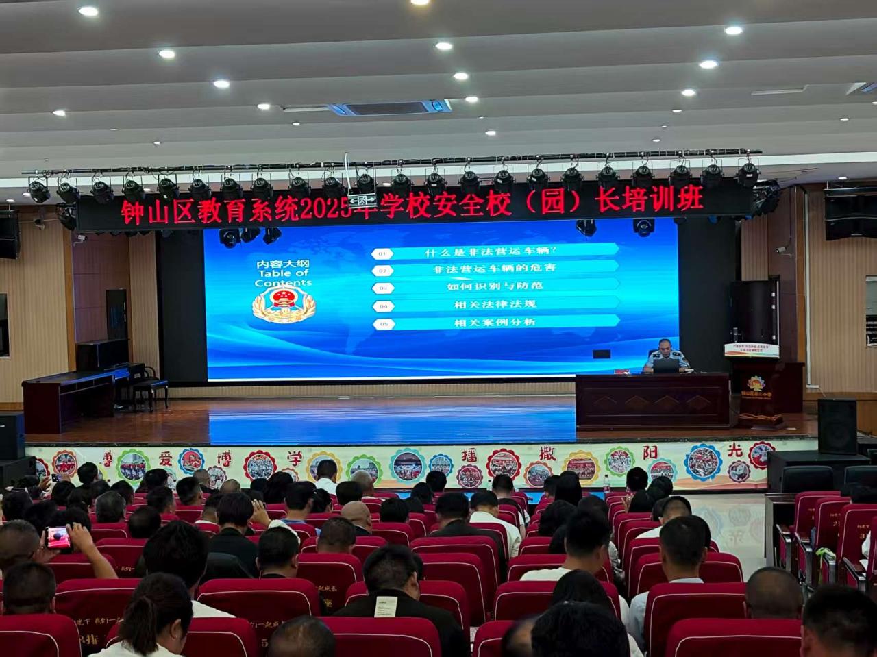 近日,貴州省六盤水市交通運(yùn)輸綜合行政執(zhí)法支隊(duì)借鐘山區(qū)教育系統(tǒng)2025年學(xué)校安全校(園)長(zhǎng)培訓(xùn)班舉辦之機(jī),于鐘山區(qū)第二小學(xué)組織開展了一場(chǎng)以拒乘“非法營運(yùn)車輛”(俗稱“黑車”)為主題的專題培訓(xùn)。本次活動(dòng)旨在增強(qiáng)師生對(duì)“黑車”危害的認(rèn)知,共同營造更加安全的校園周邊交通環(huán)境。