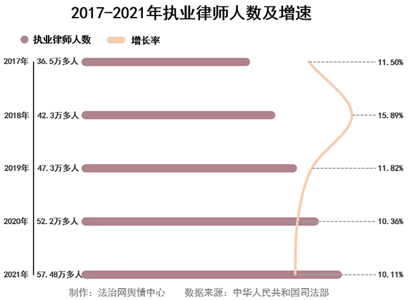 1.全國(guó)執(zhí)業(yè)律師超57.48萬人,近五年平均增速超10%