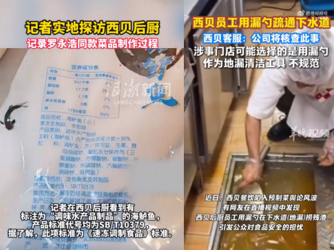 9月12日起,中國藍新聞、百姓315等多家媒體紛紛實地直播探訪各地西貝門店,先后曝出西貝門店后廚使用電磁爐而無明火灶;餐品原材料使用多種保質期數(shù)月以上的冷凍食材,包括用于制作兒童餐的“速凍西藍花”、生產(chǎn)自2024年9月的“凍羊腿”、含食品添加劑的“凍海鱸魚”;部分餐品使用轉基因大豆油等后廚情況。此外媒體直播還顯示,西貝員工疑似使用廚具漏勺打撈疏通下水道。