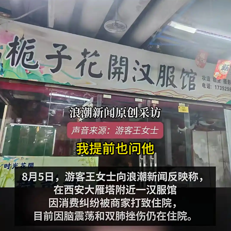 8月3日至4日,抖音用戶“寶地二樓丫丫拖鞋泳衣”發(fā)布多個視頻稱,其一行人在西安旅游拍照遭遇“黑店”,梔子花開漢服館不履行“微信選片”承諾,致其在店內(nèi)被拖延六七個小時,該游客找老板理論時卻遭到毆打,聲稱“被打成腦震蕩、雙肺挫傷,孩子無人管餓得直哭,警方等有關(guān)部門不作為”。部分網(wǎng)民留言批評涉事商家“給西安形象抹黑”,支持該女子維權(quán)。8月6日,浪潮新聞單方面采訪當(dāng)事女子,該女子稱其因不滿拍攝和選片向店里的其他游客吐槽,被商家認(rèn)為是“鬧事”影響門店生意,遭揮拳打暈。有媒體根據(jù)此報道設(shè)置“游客在西安因消費糾紛遭商家毆打”等話題,同時該女子控訴“我們來西安是旅游的,不是來挨打的”短視頻在大象新聞、溫州都市報等媒體的傳播助推下,引起群情激憤,涉事商家遭到網(wǎng)民譴責(zé)。