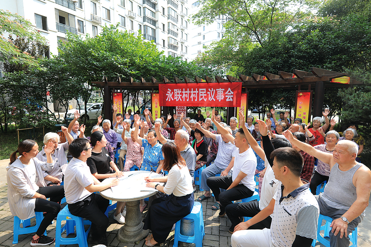 推進(jìn)鄉(xiāng)村自治,打造永聯(lián)樣本。永聯(lián)村搭建了“村民代表大會(huì)、村民議事會(huì)、樓道懇談會(huì)”三級(jí)議事平臺(tái),形成“代表大會(huì)議大事、議事團(tuán)體議難事、樓道小組議瑣事、媒體平臺(tái)議冒尖事”的村民議事新機(jī)制,構(gòu)建了“黨建引領(lǐng)、區(qū)域協(xié)同、群眾參與、依法辦事”的治理格局,為鄉(xiāng)村自治法治作出了積極探索、提供了永聯(lián)樣本。