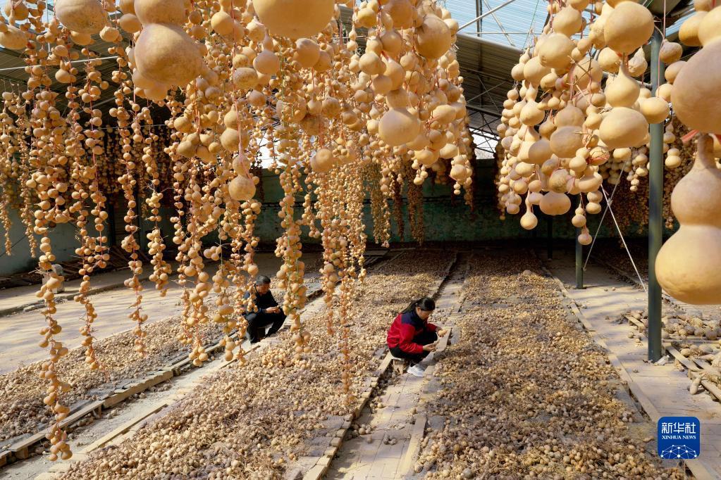 4月7日,邢臺市信都區(qū)會寧鎮(zhèn)張爾莊村村民在挑選葫蘆。記者 駱學(xué)峰 攝