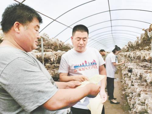 中國太保產(chǎn)險河北分公司工作人員走訪查看食用菌種植情況。李辰 攝