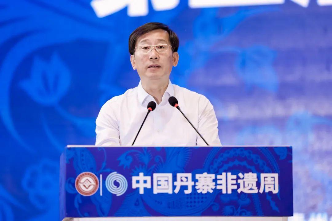 7月21日晚,第三屆中國丹寨非遺周在貴州省黔東南州丹寨縣丹寨萬達(dá)小鎮(zhèn)開幕。全國人大教科文衛(wèi)委員會(huì)主任委員、文化和旅游部原黨組書記、部長雒樹剛出席。文化和旅游部副部長饒權(quán)講話。中國非物質(zhì)文化遺產(chǎn)保護(hù)協(xié)會(huì)會(huì)長王曉峰,貴州省人大常委會(huì)副主任、省總工會(huì)主席桑維亮,萬達(dá)集團(tuán)總裁齊界致辭。貴州省人大常委會(huì)黨組成員于杰,貴州省委宣傳部副部長、省文化和旅游廳廳長孫含欣,州委書記、州長安九熊,州人大常委會(huì)主任湯越強(qiáng),州政協(xié)主席潘玉鳳,州領(lǐng)導(dǎo)譚海、崔鵬、龍黔清、王建華,亞洲財(cái)富論壇執(zhí)行主席、秘書長韓劍鋒出席開幕式。中國非物質(zhì)文化遺產(chǎn)保護(hù)協(xié)會(huì)副會(huì)長兼秘書長張雅芳主持開幕式。