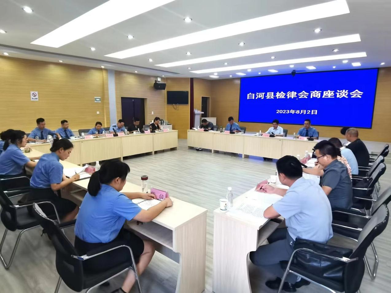 8月2日,陜西省安康市白河縣人民檢察院和白河縣司法局組織召開檢律會商座談會,邀請全縣公職律師、法律援助律師代表、政法各單位、人大代表、政協(xié)委員參加??h委政法委副書記詹遠東、縣司法局局長丁衍明參加會議,白河縣人民檢察院黨組副書記、副檢察長張吉漢主持座談會。