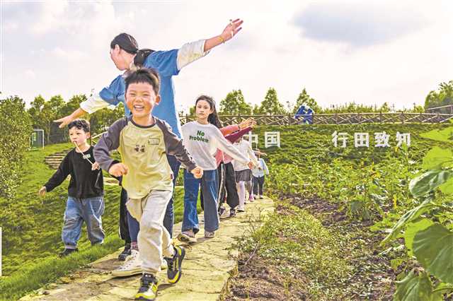 北碚區(qū)柳蔭鎮(zhèn)東升村,老師帶領(lǐng)孩子們?cè)谔镩g研學(xué)(資料圖片)記者 尹詩(shī)語(yǔ) 攝