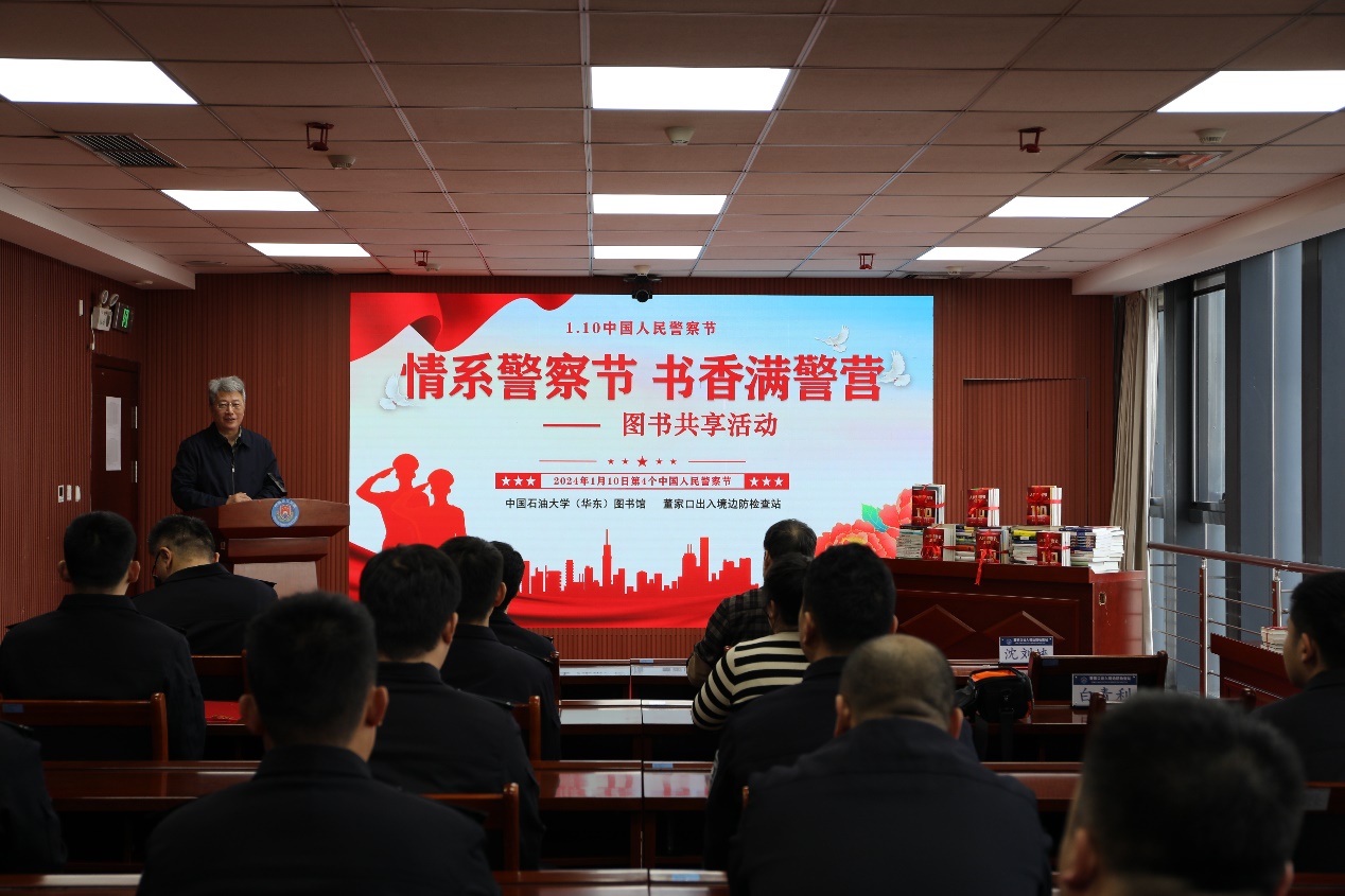 1月8日,山東出入境邊防檢查總站董家口邊檢站與中國石油大學(華東)圖書館開展“情系警察節(jié) 書香滿警營”圖書共享活動,慶祝第四個中國人民警察節(jié),鼓勵民警發(fā)現讀書的樂趣,培養(yǎng)讀書的習慣,推動“書香警營”建設。