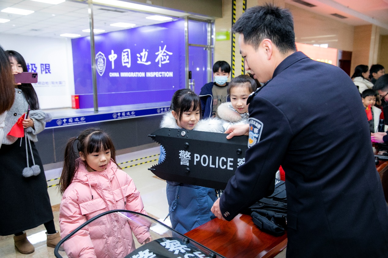 近日,山東出入境邊防檢查總站董家口邊檢站組織開(kāi)展與你“童”行迎新春進(jìn)警營(yíng)系列活動(dòng),民警家屬與警娃共計(jì)30余人走進(jìn)警營(yíng),“零距離”體驗(yàn)警營(yíng)生活,共同預(yù)祝龍年新年的到來(lái)。