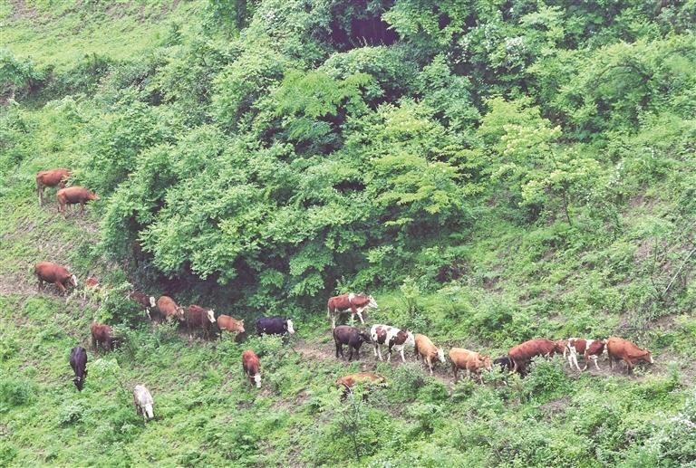 鳳岡縣新建鎮(zhèn)橋塘村村民放養(yǎng)的肉牛 喬啟明 攝