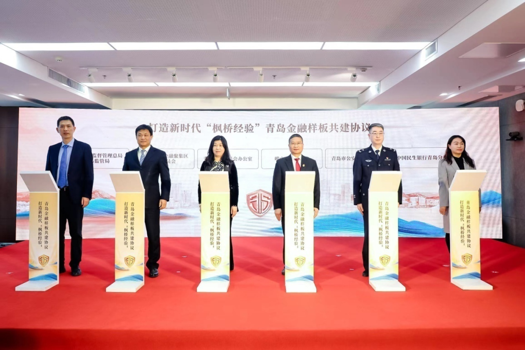 國(guó)家金融監(jiān)督管理總局青島監(jiān)管局、青島金家?guī)X金融聚集區(qū)管理委員會(huì)、青島仲裁委員會(huì)辦公室、嶗山區(qū)人民法院、嶗山公安分局、中國(guó)民生銀行股份有限公司青島分行共同簽訂《打造新時(shí)代“楓橋經(jīng)驗(yàn)”青島樣板聯(lián)建共建協(xié)議》,國(guó)家金融監(jiān)督管理總局青島監(jiān)管局黨委書記、局長(zhǎng)張忠寧與嶗山區(qū)人民法院黨組書記、院長(zhǎng)張堅(jiān)共同為嶗山區(qū)人民法院“金法E站”揭牌?!敖鸱‥站”是嶗山區(qū)人民法院為打造新時(shí)代“楓橋經(jīng)驗(yàn)”青島金融樣板所進(jìn)行的積極實(shí)踐,其兼具訴源治理、訴前調(diào)解、法治宣傳、司法確認(rèn)等多項(xiàng)功能,是一體化、全功能的金融糾紛多元化解平臺(tái)。