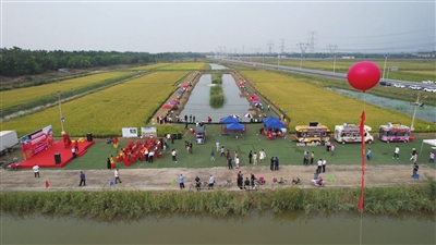 周李莊魚(yú)水田城市農(nóng)業(yè)生態(tài)園蟹肥稻香的豐收景象(資料片)
