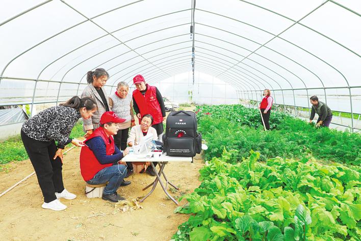 有了“行走的醫(yī)院”助診包,應(yīng)城村醫(yī)在蔬菜大棚里也能看病 通訊員 黎財雄 攝