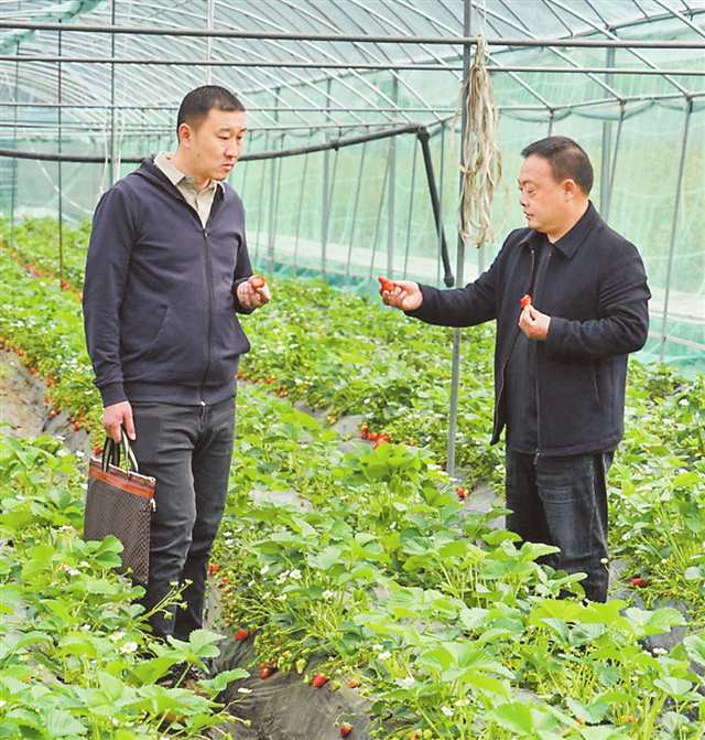 何書勤(左)在城口縣北屏鄉(xiāng)太平社區(qū)草莓種植基地走訪調研(受訪者供圖)