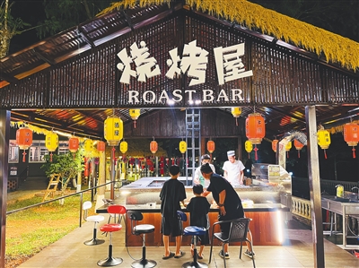 近日,游客在才存共享農(nóng)莊內(nèi)的鄉(xiāng)村酒吧街消費(fèi) 記者 高懿 攝