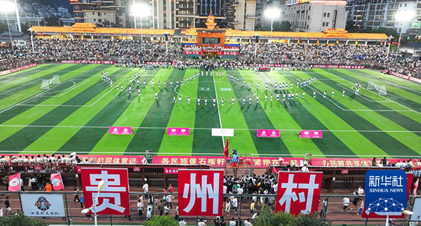 2023年5月13日,由榕江當(dāng)?shù)?0支村隊(duì)發(fā)起的全稱(chēng)為貴州榕江(三寶侗寨)和美鄉(xiāng)村足球超級(jí)聯(lián)賽的“村超”打響。之后,這一賽事便火爆“出圈”、火出國(guó)門(mén),全網(wǎng)瀏覽量超700億次,成為現(xiàn)象級(jí)草根賽事。