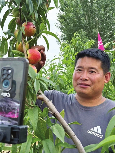 其實于志海最初是靠種植黃油桃出名的。如今他不但沒丟了這門手藝,還精進了——在大棚里種黃油桃,用的還是以鵝養(yǎng)地妙招。“棚里的桃能比田地里早一個月上市,一斤能多賣出10多塊錢呢?!彼f今年長勢不錯,明年準備擴大大棚桃樹栽種面積。(照片由受訪者提供)