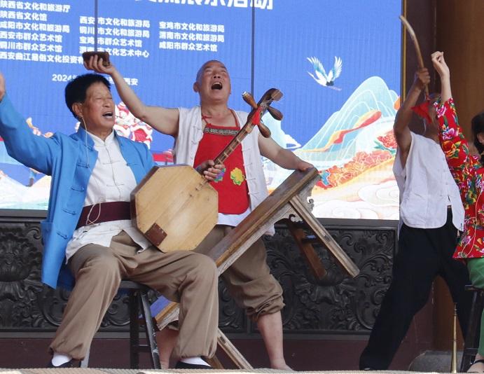 6月28日,西安市夏日廣場(chǎng)群眾文化活動(dòng)現(xiàn)場(chǎng),精彩的秦腔表演與觀眾見面