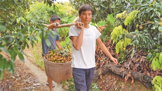 武樂鎮(zhèn)水石村果農(nóng)運(yùn)送剛采摘的荔枝