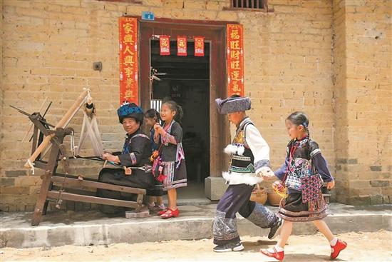 走進連山壯族瑤族自治縣福堂鎮(zhèn)太平村委會金龜村,近年打造的鄉(xiāng)村文化空間——壯瑤傳統(tǒng)風(fēng)貌園一下子就驚艷了游客。在風(fēng)貌園的錦繡非遺館里,游客可以欣賞到上百件明清時期的珍貴壯錦藏品;在非遺工坊和研學(xué)基地里,游客可以參與研學(xué),沉浸式體驗壯錦的編織與文創(chuàng);在染料種植科普園里,游客還可以與自然親密接觸,增長見識……