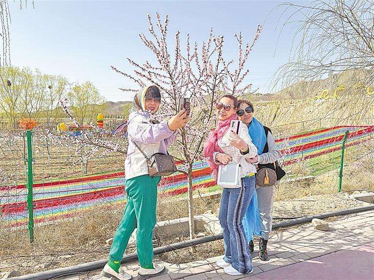 石嘴山市大武口區(qū)龍泉村的桃花節(jié)吸引游客前來“打卡”
