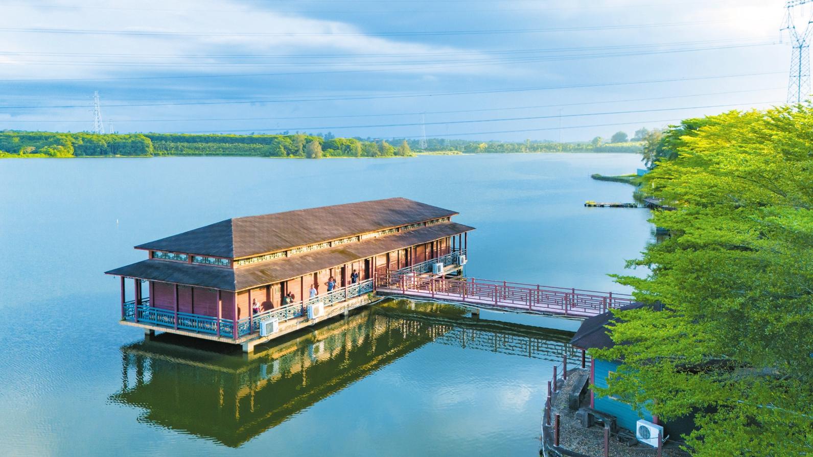 25日,走進(jìn)位于龍華區(qū)新坡鎮(zhèn)的??谔敦S洋火山濕地農(nóng)莊,一幅人與自然和諧共生的田園風(fēng)景畫映入眼簾。在民宿區(qū)域,一座座獨(dú)棟木屋綠植環(huán)繞,屋檐懸掛著古色古香的燈籠,給人不一樣的感覺。潭豐洋火山濕地農(nóng)莊負(fù)責(zé)人王作學(xué)介紹,通過濕地科普、團(tuán)建露營、研學(xué)教育等方式,農(nóng)莊吸引了越來越多人走進(jìn)濕地、了解濕地、愛護(hù)濕地。