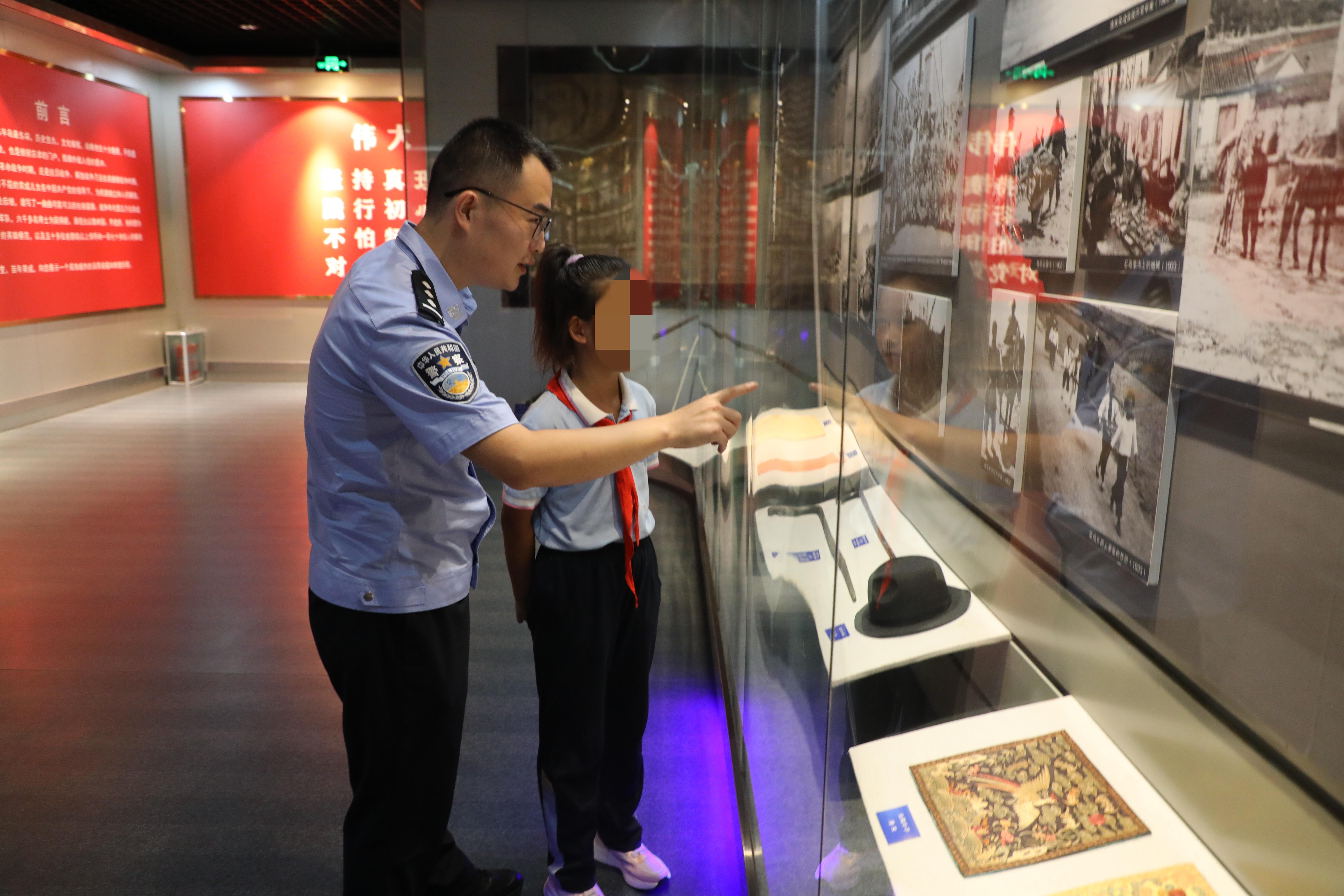 活動中,該站民警攜手駐地小學學生一起走進榮成市博物館“世紀榮成”展館,共同了解榮成從古至今的發(fā)展歷程,傳承紅色基因,弘揚愛國精神。整個展館共展出700多張珍貴照片、300多件珍貴文物資料,展示了榮成自辛亥革命以來百年社會進程、典型人物及榮成兒女取得的輝煌成就。通過一幅幅的歷史照片和抗戰(zhàn)時期歷史實物,生動再現(xiàn)了抗戰(zhàn)時期,無數(shù)英勇無畏的中華兒女,為了民族獨立和人民解放,浴血奮戰(zhàn)、前赴后繼的壯烈事跡。跟隨著解說員的講解,大家仿佛被帶入到那段艱苦卓絕、血雨腥風的抗戰(zhàn)歲月,看到了戰(zhàn)爭背后鮮為人知的感人故事,心靈受到了洗禮,思想也得到了升華。