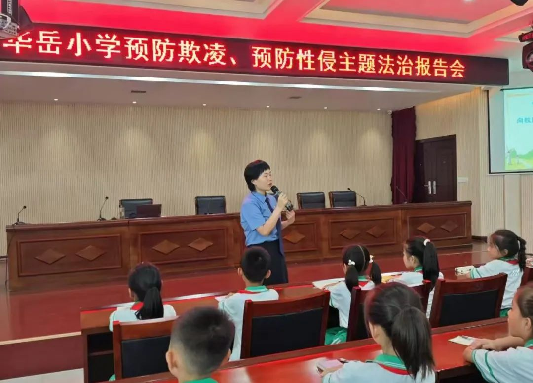 九月是秋風(fēng)送爽的季節(jié),也是同學(xué)們新學(xué)期的開始。新學(xué)期、新開始,為進一步凈化校園環(huán)境,杜絕校園欺凌行為發(fā)生,不斷提高青少年的法治意識和自我保護能力。2024年9月9日下午,陜西省渭南市華陰市人民檢察院未檢干警受邀來到華岳小學(xué),開展新學(xué)期的第一堂法治課。