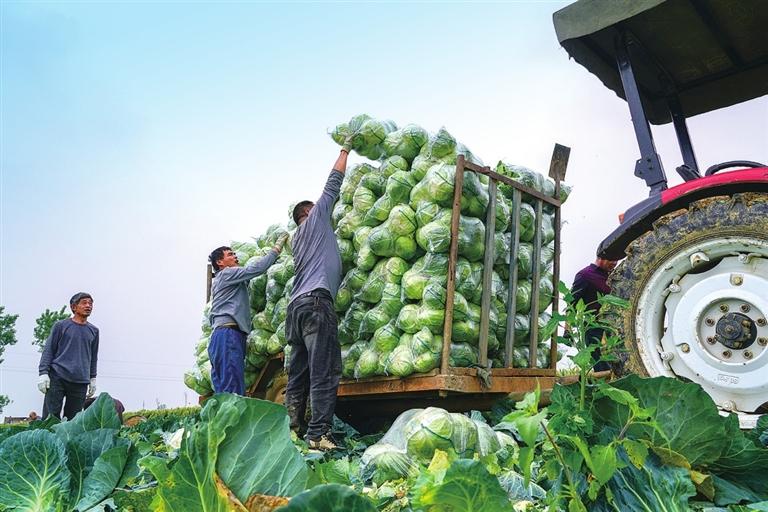 鄧州市九龍鎮(zhèn)前河村菜農(nóng)正在將豐收的蔬菜整車(chē)外運(yùn) 趙蕾 攝