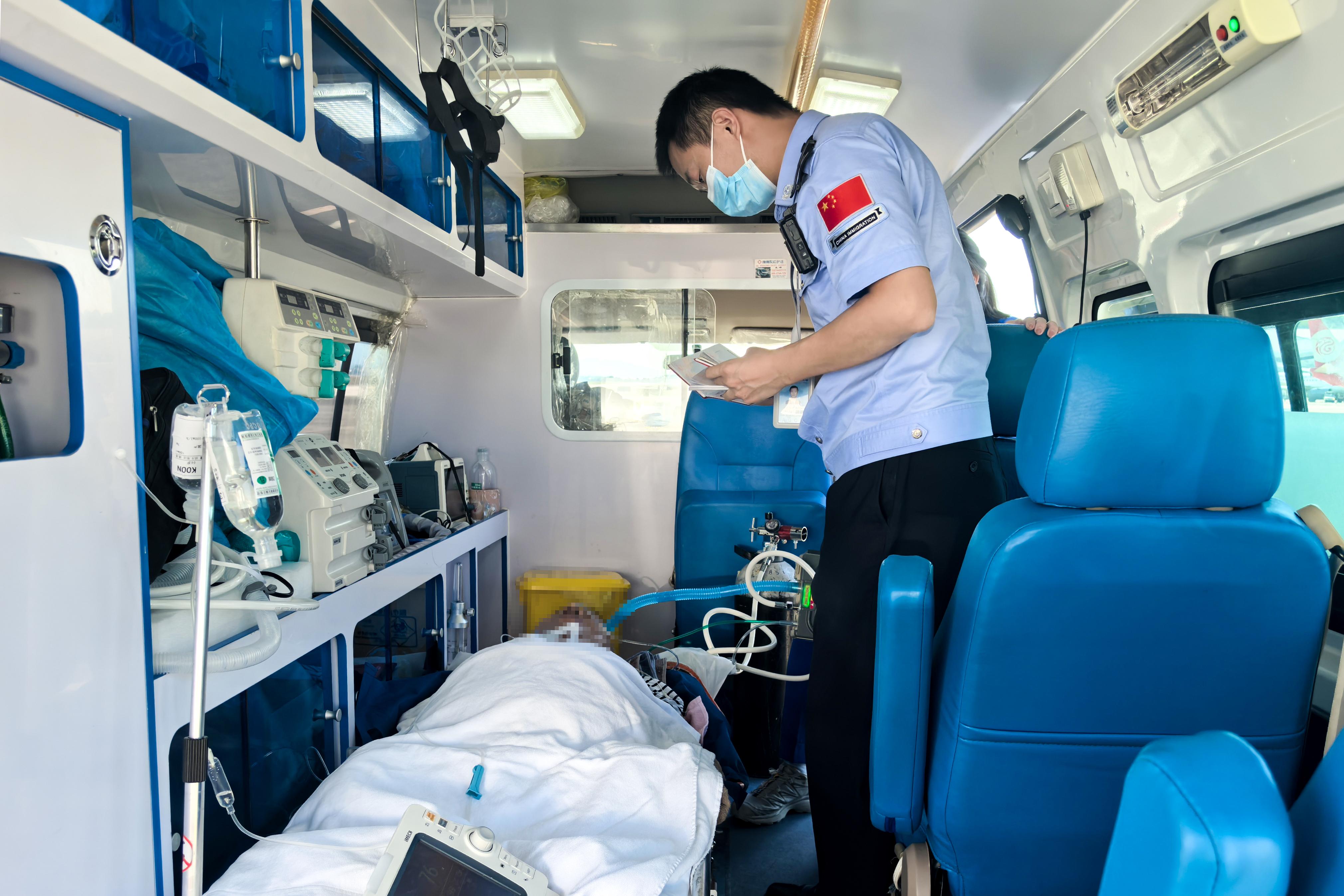 9月24日,張家界邊檢站民警在救護(hù)車上進(jìn)行人證對照 李杰 攝