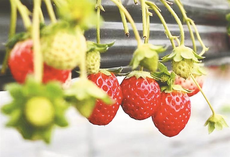 在阜寧鎮(zhèn)建新村大嶺下屯還有7棟特別的溫室大棚,大棚內(nèi)一排排田埂整齊劃一,翠綠的葉子中間綴滿了水果黃瓜和草莓柿子,果實(shí)、綠葉、黃花交相輝映。為合理規(guī)劃大棚空間,溫室大棚采用“錯(cuò)茬種植、一棚多產(chǎn)”的發(fā)展模式,大棚每年可種植兩到三茬蔬菜,草莓、柿子、豆角、辣椒、菠菜、黃瓜等果蔬輪番種植,提高大棚的利用率,實(shí)現(xiàn)一棚多用、一地多季、一年多收。之后將綜合考量市場(chǎng)需求,采取“種植+采摘+休閑”的模式融合發(fā)展,以打造綠色、有機(jī)蔬果為目標(biāo),不斷提升蔬果品質(zhì)和知名度。