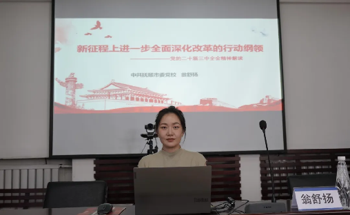為深入學(xué)習(xí)貫徹黨的二十屆三中全會(huì)精神,進(jìn)一步提升檢察人員對(duì)全面深化改革的認(rèn)識(shí)和理解。9月12日,遼寧省撫順市新?lián)釁^(qū)人民檢察院邀請(qǐng)市委黨校理論宣講中心翁舒揚(yáng)老師,為全院干警帶來了一場(chǎng)題為“新征程上進(jìn)一步全面深化改革的行動(dòng)綱領(lǐng)——黨的二十屆三中全會(huì)精神解讀”的專題宣講。
