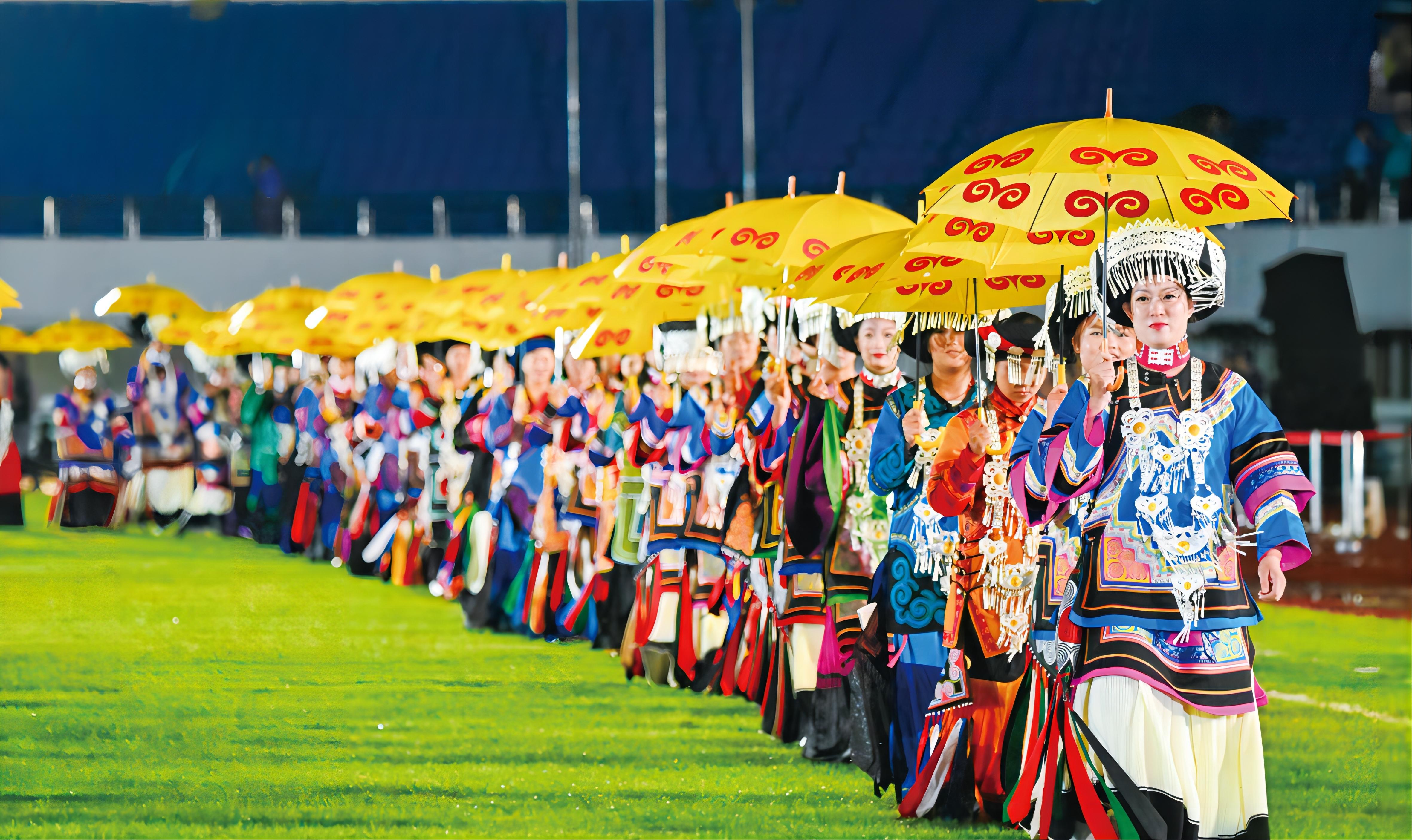 抖音足球嘉年華現場彝族服飾展演(西昌市文化廣播電視和旅游局供圖)