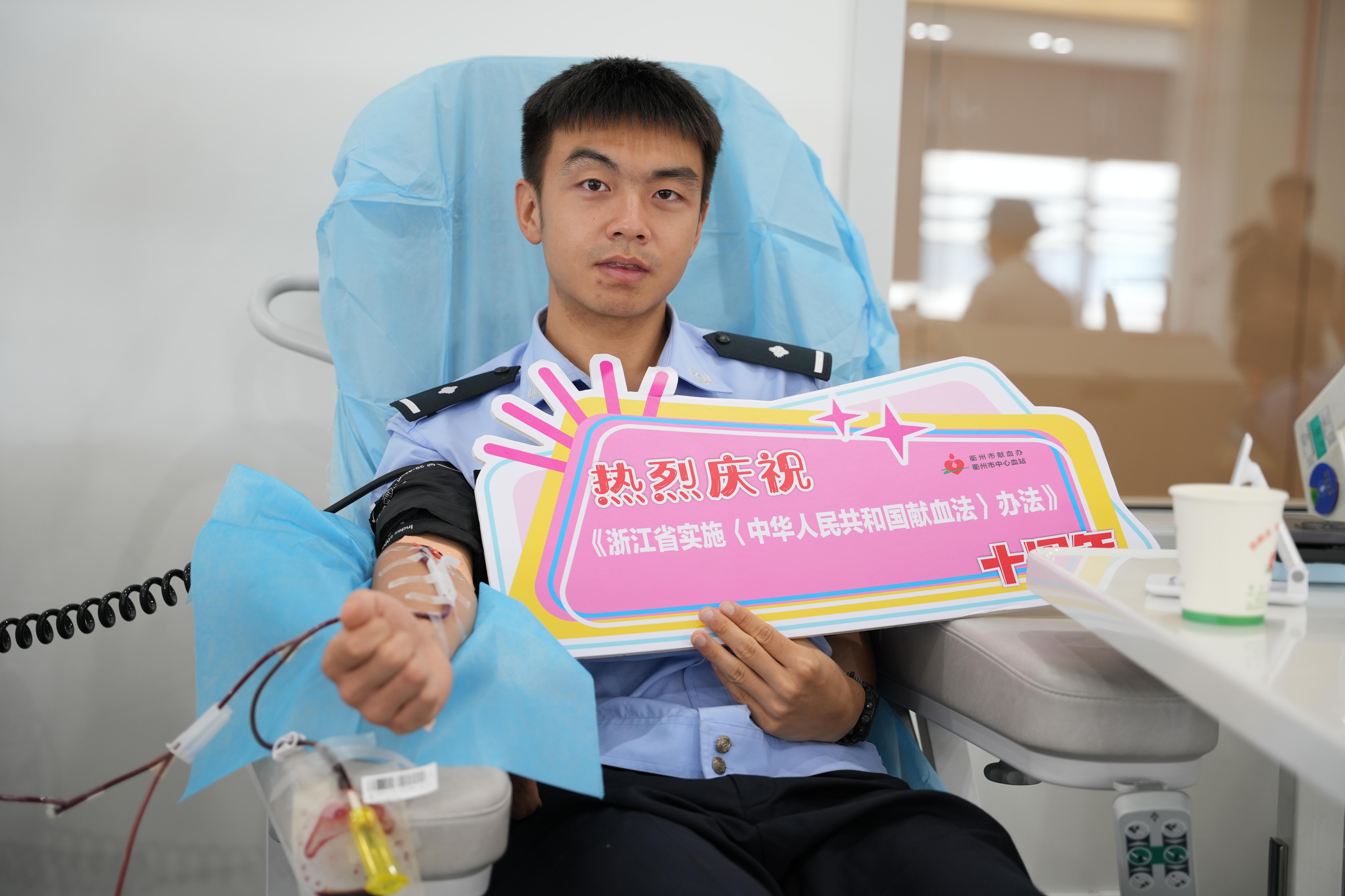 如今,徐垠飛已成為衢州市中心血站的“救火隊長”,每當血庫告急,工作人員總會第一時間想到他。無論刮風下雨,他總能及時出現(xiàn)在血站,血站里的護士也被他的行為所感動,徐垠飛笑著說,“作為一名黨員,參加無償獻血我隨叫隨到”。
