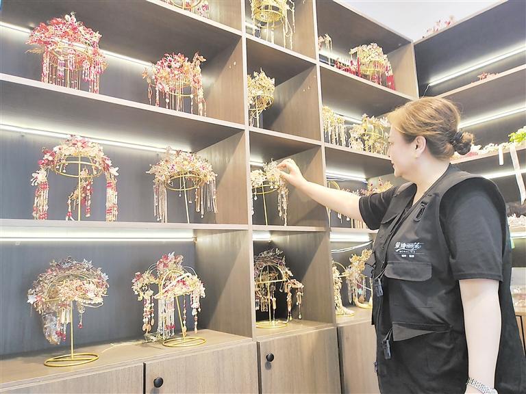 在主街福寧街上,劉莎的影樓內(nèi)外裝修格外別致,櫥窗設(shè)計(jì)明亮而時(shí)尚。21年前,劉莎從新疆來到閩寧鎮(zhèn)創(chuàng)業(yè)開辦了一個(gè)百平方米的影樓,她也親眼見證了閩寧鎮(zhèn)各族移民從“吃飽穿暖”到“要生活品質(zhì)”的嬗變?!斑^去我走村串戶給新娘化妝,能接一單五六百元錢的生意就是大單,現(xiàn)在人們生活越來越好,都來店里化妝,可以選擇做中式或西式等多種造型,接到3000多元的生意很平常?!苯┠?,消費(fèi)業(yè)態(tài)不斷向新,激勵(lì)劉莎的影樓也不斷轉(zhuǎn)型升級(jí),她不僅將影樓面積擴(kuò)大至500平方米,招聘了4名固定店員,推出了數(shù)十種的攝影服務(wù),還提供銀川周邊的旅拍?!般y川有的,我們這里也有,最近我打算外出再購置一些新的拍攝服裝,群眾消費(fèi)在升級(jí),我的服務(wù)也要升級(jí),要跟得上群眾的需求??!”劉莎笑呵呵地說。