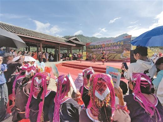 10月26日,2024年上思縣中國農民豐收節(jié)在該縣最為偏遠的村屯——南屏瑤族鄉(xiāng)常隆村百馬屯舉辦。在這里,百馬梯田金黃色的稻浪隨風起伏,一片豐收的景象。瑤族群眾身著節(jié)日盛裝,載歌載舞,與來自五湖四海的游客共同歡慶。