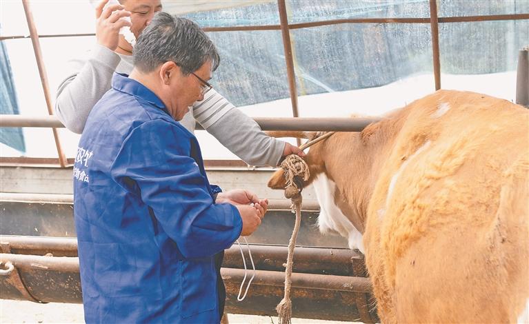一年深秋,河泉村養(yǎng)殖戶王滿家的牛誤食野草根莖,食管阻塞停止反芻。老牛漲肚難受,奄奄一息。姚金水趕到后,立即用開口器撬開牛嘴,將手伸進(jìn)食道取出阻塞物。這一下,不僅救了牛,也為王滿挽回了2萬多元的損失。