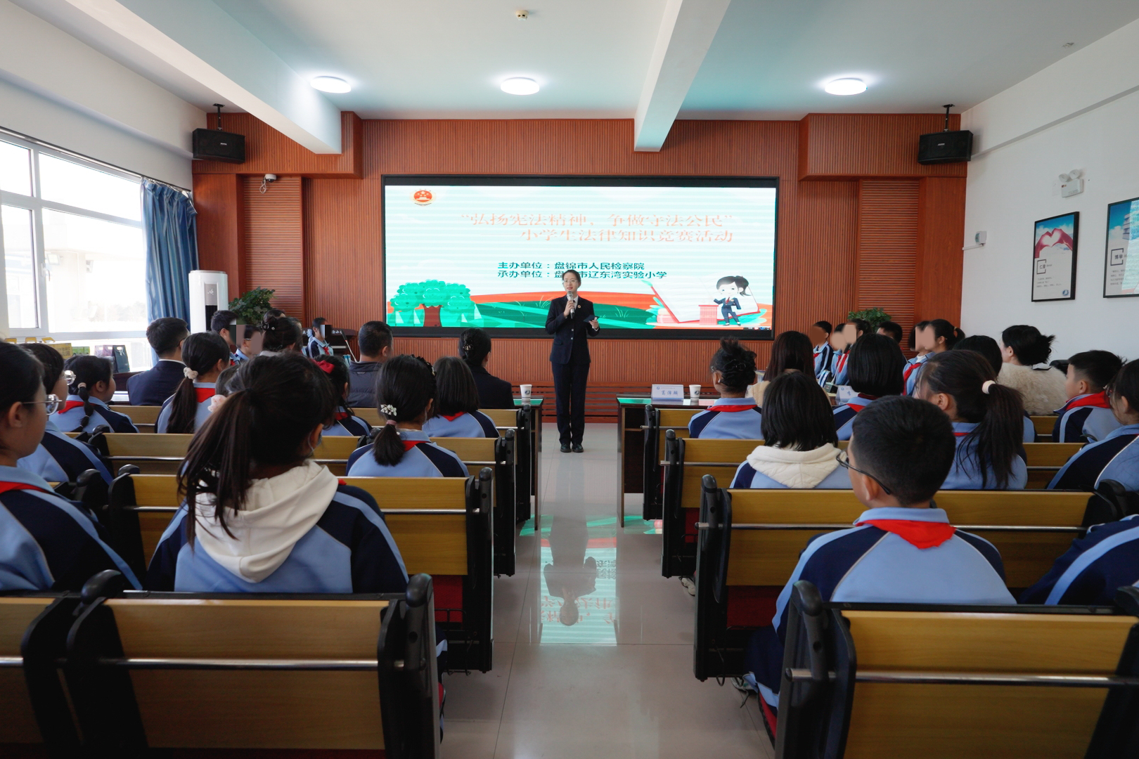 為弘揚憲法精神,進一步提升未成年人普法質效,推動檢察官擔任法治副校長“實職化”履職,在第11個憲法日來臨之際,盤錦市人民檢察院的未檢干警們走進遼東灣實驗小學,與學校聯(lián)合開展了小學生法律知識競賽活動。競賽共有“表情猜詞”“動動腦筋來擴句”和“知識競答”三個環(huán)節(jié),形式豐富多彩,內(nèi)容涵蓋了《中華人民共和國憲法》《中華人民共和國未成年人保護法》《中華人民共和國預防未成年人犯罪法》《中華人民共和國刑法》《中華人民共和國民法典》等多方面與孩子們的生活學習息息相關的法律知識。賽前檢察干警還對參賽選手們進行了專業(yè)輔導。