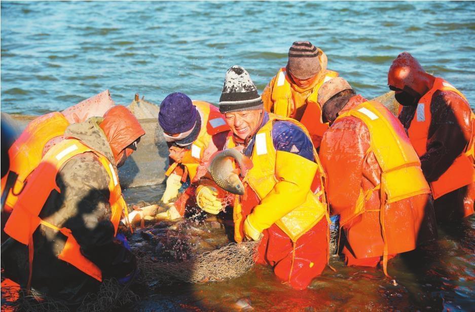 大石橋市高坎鎮(zhèn)淡水魚冬捕起網(wǎng)