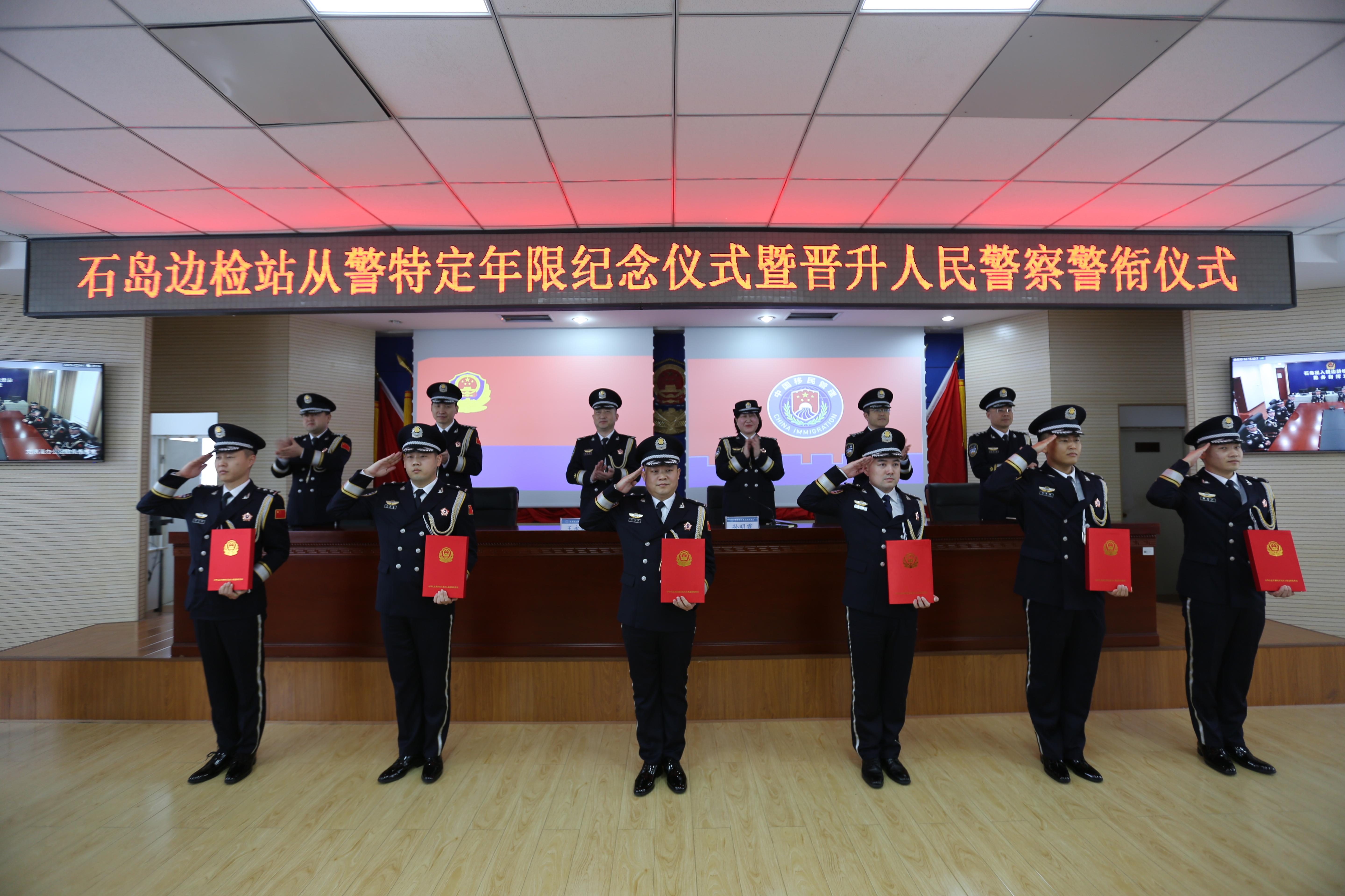 為熱烈慶祝第五個中國人民警察節(jié),進一步激發(fā)隊伍凝聚力戰(zhàn)斗力、提高民警榮譽感歸屬感,1月9日,山東省榮成市石島出入境邊防檢查站舉辦從警特定年限紀念儀式暨晉升人民警察警銜儀式。