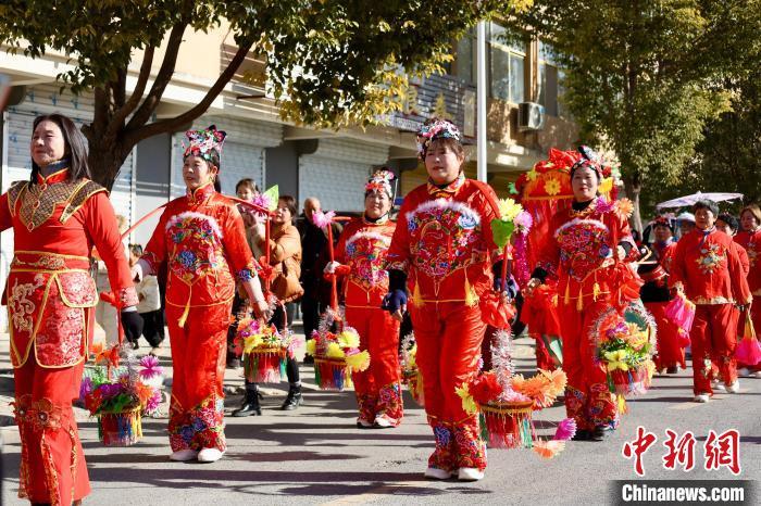 1月15日,2025年安徽省“村晚”首場(chǎng)示范展示在阜陽(yáng)舉行。圖為民舞踩街表演。記者 韓蘇原 攝